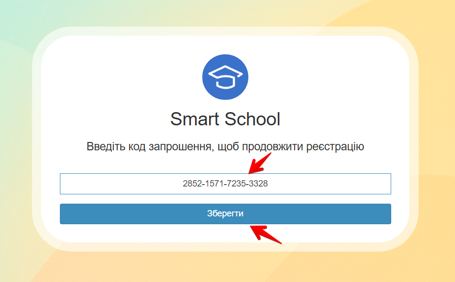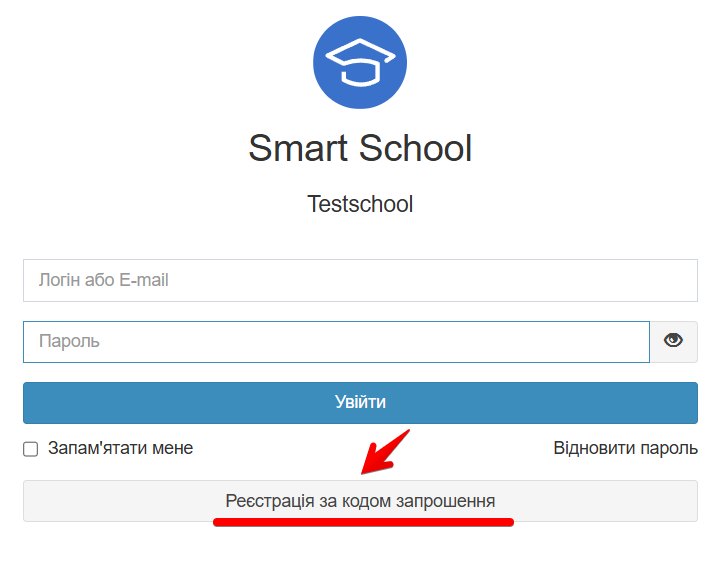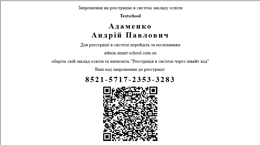 Для реєстрації у системі Вам необхідно отримати від керівництва школи персональний код запрошення.
