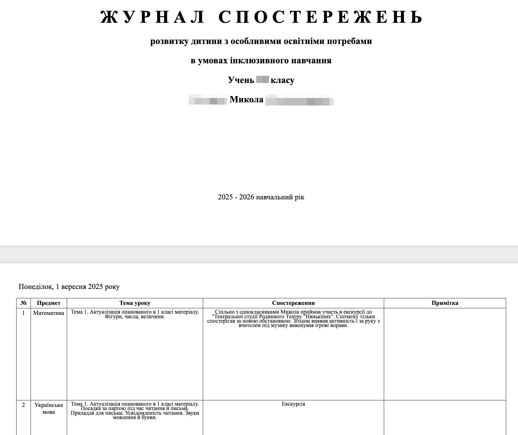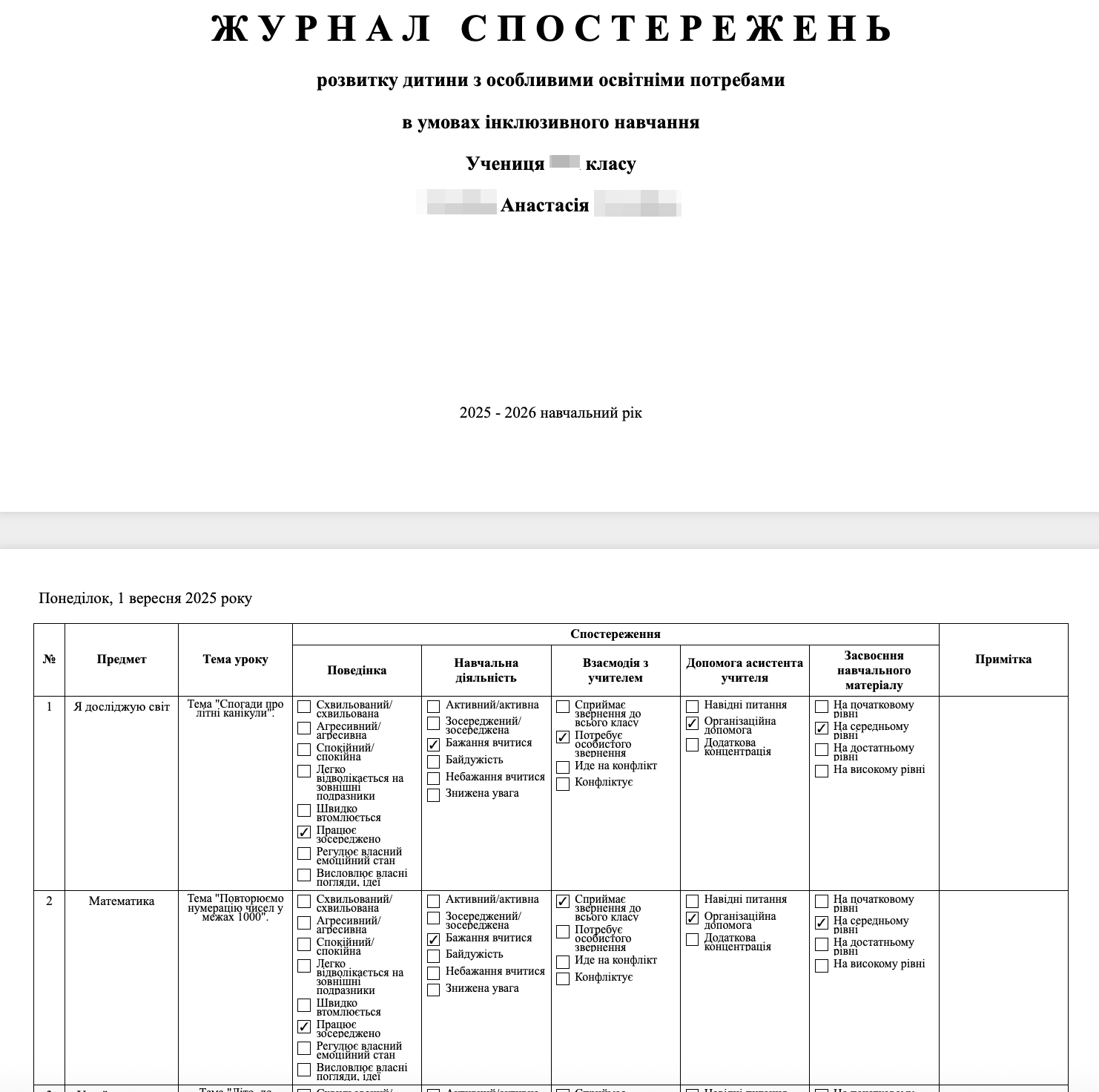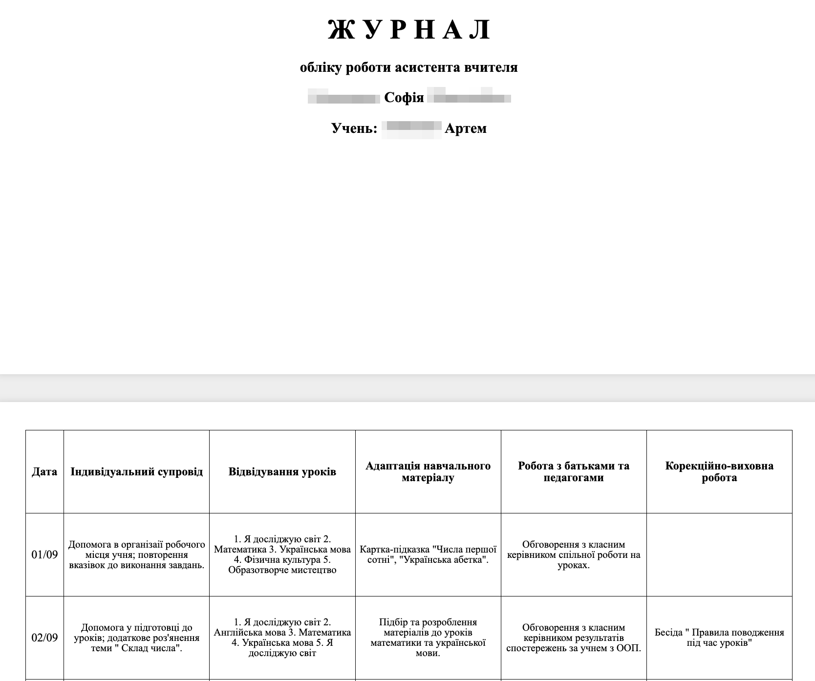 За потреби структура може змінюватися відповідно до специфіки роботи асистента та потреб дитини.