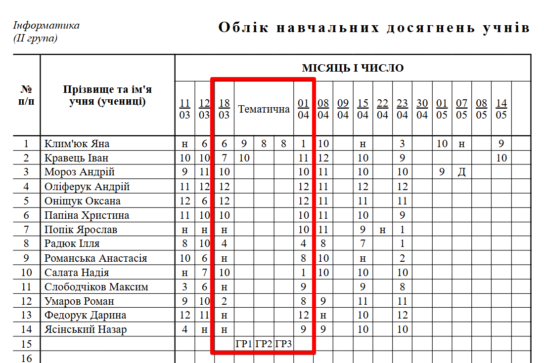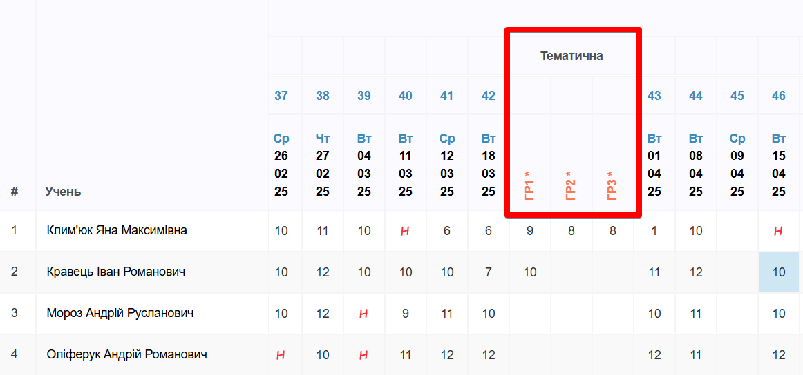 Таким чином, ГР буде проставлено на відповідну дату уроку.
