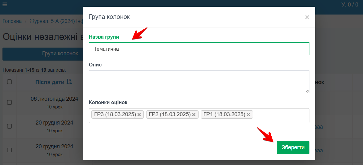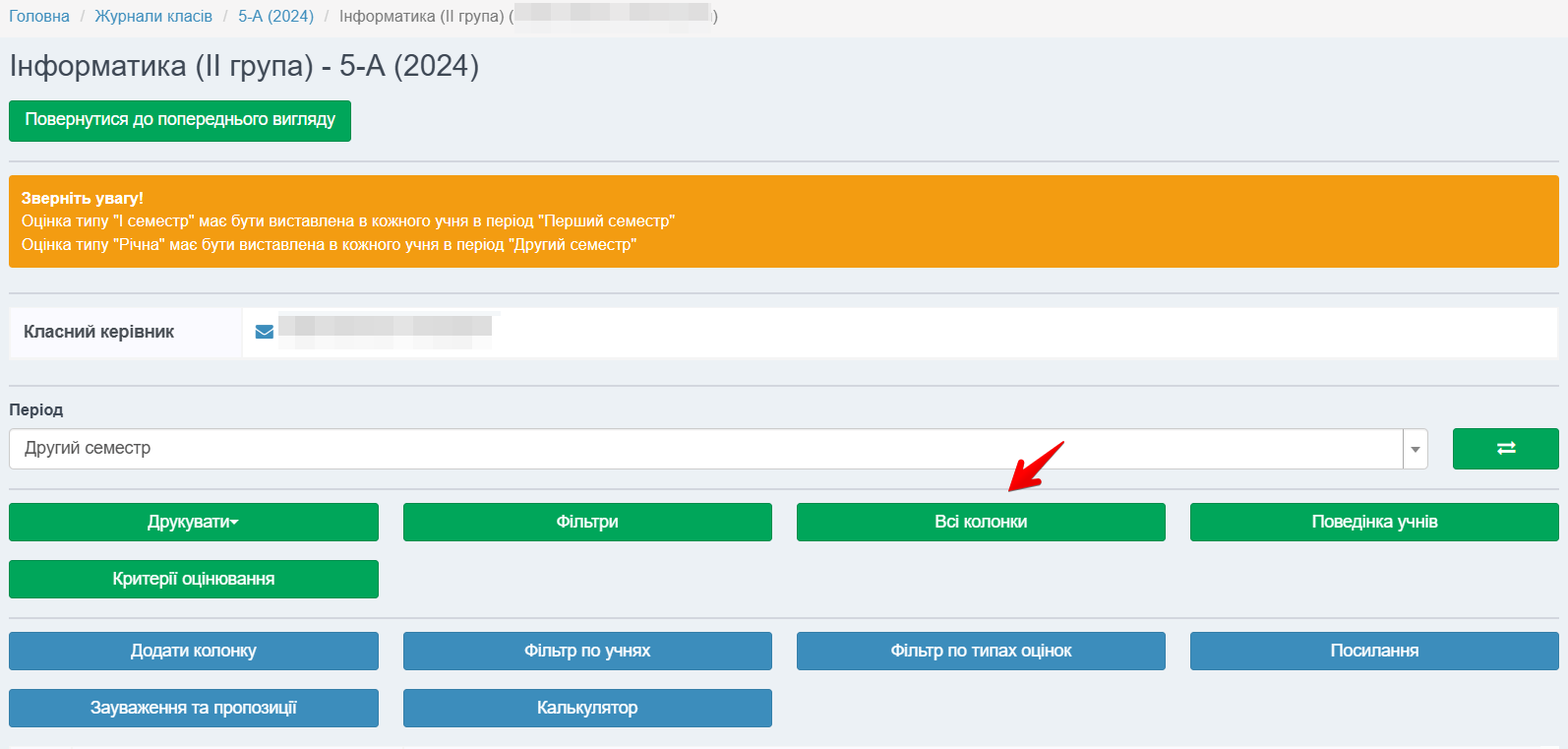 Також незалежні колонки можна об’єднувати в одну групу. Для цього перейдіть у журнал класу та натисніть кнопку “Всі колонки”.
